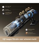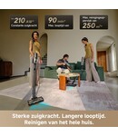 Strong suction, cleaner air: 210 AW* and 99.99% filtration: The V20 Pro-A is powered by a brushless high-speed motor and delivers up to 210 AW* of constant suction to suck pet hair, fine dust and dirt. The advanced filtration system filters 99.99%* of the particles ≥ 0.1µm, making the air cleaner and your home fresher.