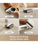 • The ultra-lightweight design with a weight of 3.98 kg also includes an integrated water reservoir that shifts the centre of gravity downwards for even more control when cleaning.