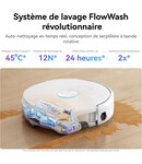 Ultra-powerful 22,000 Pa suction: The "Hurricane" system sucks up fine dust, crumbs, kibble, and large debris. The DualFlow Anti-Wrap system prevents hair from getting in the way. Its reversible side brush precisely cleans corners, while the EdgeReach system extends the mop up to 5 mm from walls, removing dirt hidden in baseboards and corners for a complete clean.