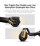Quadruple Shock Absorption: Powered by the advanced damping arm system, this scooter's dual-sided polymer arm suspension provides exceptional stability and comfort. Absorbing shocks and vibrations, it ensures a smooth ride on any terrain—urban streets or rough trails. Smarter, smoother, and built for every adventure.
