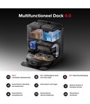 Station d'accueil multifonctionnelle 4.0 - Entretien mains libres 10 en 1 : la station d'accueil dispose d'un lavage à l'eau chaude à 80 °C et d'un autonettoyage de la station d'accueil, d'une élimination automatique de la serpillière, d'une distribution automatique de détergent, d'un lavage et d'un nettoyage intelligents et d'un séchage à l'air chaud à 55 °C* pour garder votre aspirateur et votre station d'accueil hygiéniques. De plus, la fonction de vidage automatique de la poussière assure un nettoyage mains libres jusqu'à 7 semaines