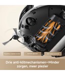 • Drie anti-klitmechanismen op wiel en borstels: De TroboWave dubbele borstel, de zijborstel en het omniwiel vormen samen een anti-klitsysteem*, waardoor rond de borstel gewikkelde haren effectief worden voorkomen voor een soepelere werking, sterkere reinigingsprestaties en minder onderhoud.
